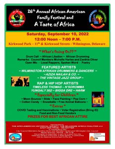 Join us for our 26th Annual African American Family Festival and a Taste of Africa. Located at Kirkwood Park on 11th and Kirkwood Street in Wilmington, DE.